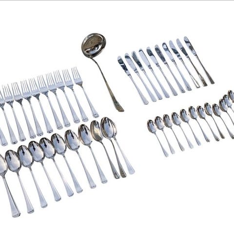 To sølvfarvede elementer øverst og nederst fuldender håndtaget på bestikket.