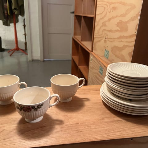10-delt serveesæt i perfekt stand, ingen misfarvninger, craquelé eller chips