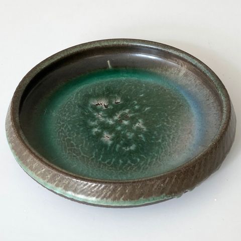 Keramik, Rundt fad, Ravnild, Rundt keramikfad fra Ravnild med flot turkis/sort glasur.