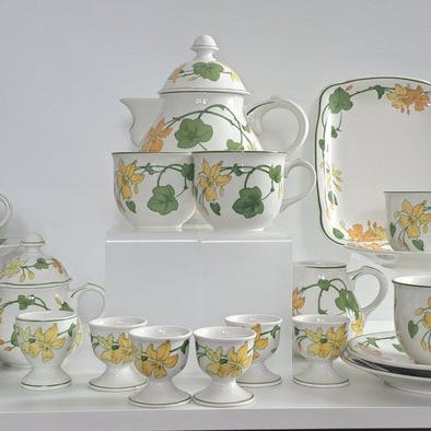 Serien "Wonderful World" fra huset Villeroy & Boch er meget sjældent at finde. Servicen er i en solrig gul farve.
