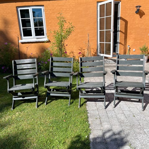 Fine, solide havestole. De er nemme at klappe sammen og man sidder godt på dem.