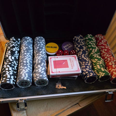 Poker sæt med jetoner og kort i aluminiumskuffert