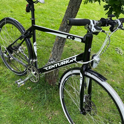 Fin velholdt Centurion unisex hybridcykel med 52 cm stel og 26" hjul. Cyklen er helt i orden og i god kvalitet. Kører rigtig godt. De 27 gear har stor spredning, så selv de stejleste bakker let kan forceres. Cyklen har lige styr, hydrauliske håndbremser. Udstyret med bagagebærer, skærme og baglygte, samt nye dæk med mønster egnet til både by, hverdagskørsel og grus/skov. Den vil også være super til cykelferien.