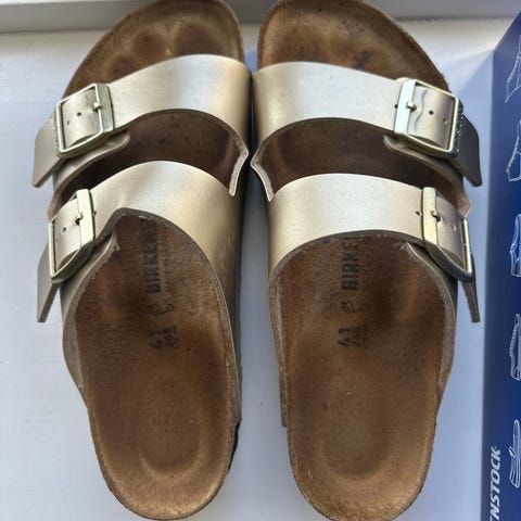 Birkenstock Arizona sandaler i str. 38. Modellen har to justerbare remme med spænder og formstøbt fodseng. Overdel i brun nuance og klassisk korksål med mørk ydersål. Velegnet som hverdagssandal og fritidssko.