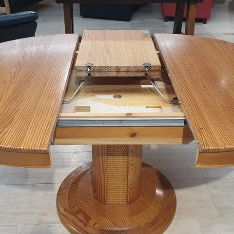 Unik udtræksfunktion: Som det ses på billederne, har bordet en super smart og solid udtræksmekanisme, så det nemt kan forvandles til et ovalt bord med den medfølgende midterplade. Det giver masser af fleksibilitet til både hverdagen og gæster.