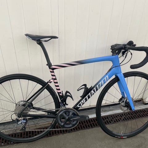 Specialized Tarmac SL6 racercykel i str. 49 cm. Skivebremser, Shimano 105 og DT Swiss R470 db hjul. Carbonramme. Specialized saddel.