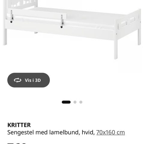 To flotte IKEA Kritter juniorsenge 70 x 160 cm, lamelbund og madras medfølger. I rigtig god stand med ganske få små brugsspor. Giver børneværelset et hyggeligt præg.