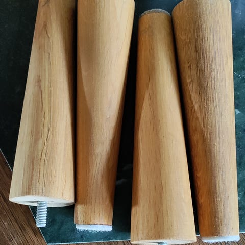 8 stk sengeben til senge fra Sovezonen i Helsinge. Benene er i eg, 19 cm lange, diameter 5,5 cm. Helt nye.
