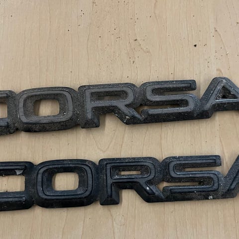 Volvo 66 GL emblemer til bil. Sættet består af to emblemer med teksten "VOLVO" og "66 GL". Emblemerne er beregnet til montering på bilens karrosseri som model- og mærkebetegnelse. Pr. stk. 100,00.