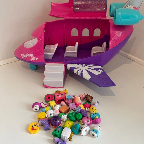Fly, Shopkins, Air Jet, Rigtigt fint Shopkins fly som fremstår næsten som nyt. Taget kan åbnes, vingerne kan tages af og 2 af sæderne kan drejes rundt.