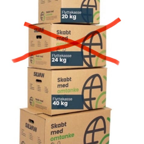 35 flyttekasser i forskellig stand
