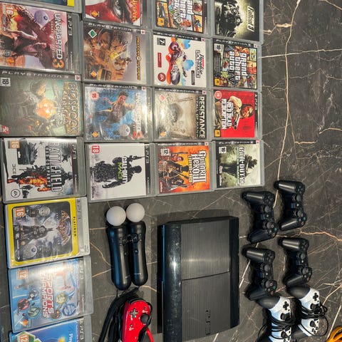Sony Playstation 3 konsol med Logitech Driving Force GT rat og PS Move
