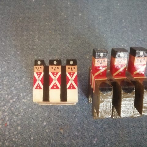 Træfigurer, Tivoligardere, de gamle, De gamle gardere. Sælges kun samlet. Fine stempler. Dog er den ene så gammel at der ikke er noget stempel på. Kom gerne med et fair bud ??