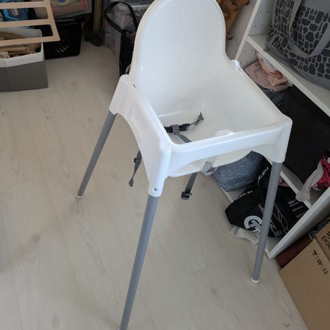 IKEA højstol i plast med metalben, benene er aftagelige.