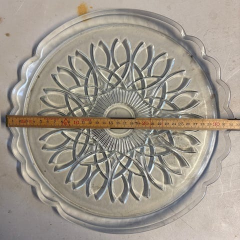 Glas, Glas fad, Smuk rundt glas fad med mønster.