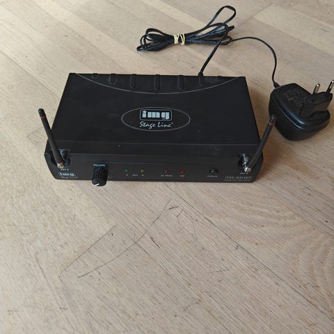 Plaky trådløst mikrofonsæt med modtager og to håndholdte mikrofoner i sort. Sættet består af en trådløs modtagerenhed med antenner, tilslutningskabel og strømledning samt to matchende mikrofoner. Velegnet til tale, sang, præsentationer eller lignende brug, hvor der er behov for trådløs mikrofonforbindelse til et anlæg eller en mixer. Modtageren tilsluttes via kabel til eksisterende lydudstyr.