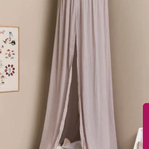 Alice & Fox sengehimmel til børn i rosa. Sengehimlen er designet til at hænge over en barneseng eller legeområde og skaber et afskærmet og hyggeligt rum. Stoffet er let og faldende, og sengehimlen monteres i loftet med ophæng i toppen.