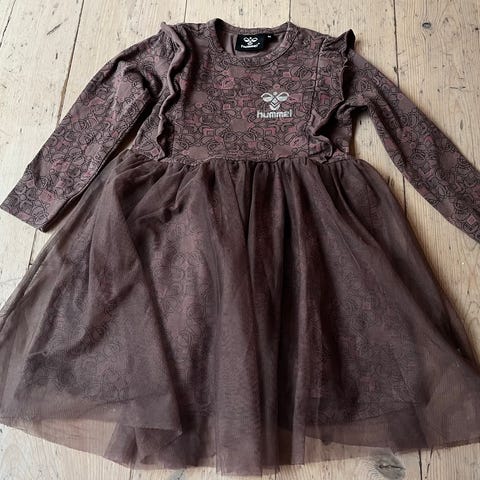 Hummel kjole til pige i størrelse 140. Kjolen er blå og fremstillet i bomuld. Den har lange ærmer og rund hals. Overdelen er i jerseykvalitet, mens nederdelen har et let, lagdelt skørt. Diskret Hummel-logo på brystet og striber ned langs siderne på skørtet. Velegnet som hverdagskjole eller til pænere brug for piger i børnestørrelse 140.