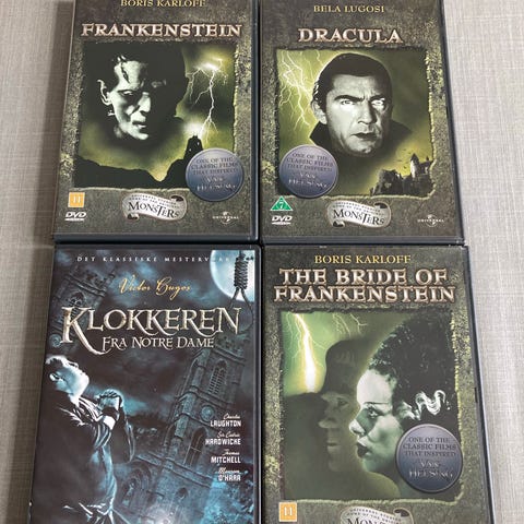 Universal Monsters Blu-ray samleboks i sort kisteformet boks. Boksen indeholder klassiske Universal-monsterfilm, herunder blandt andet Dracula, Frankenstein, The Mummy, The Invisible Man, Bride of Frankenstein, The Wolf Man, The Phantom of the Opera og Creature from the Black Lagoon. Medfølgende tryksager og illustrationer med filmplakater og information om filmene. Velegnet til samlere af klassiske horrorfilm og fysisk mediesamling på Blu-ray.
