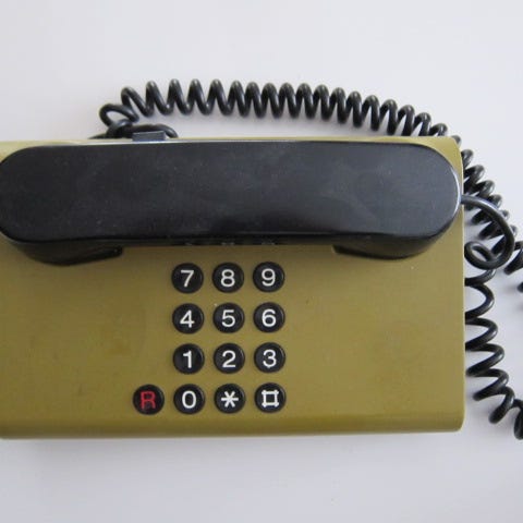 Bordtelefon, Kirk Lotus, KTAS fra 1990'erne med trykknapper, led og stik.