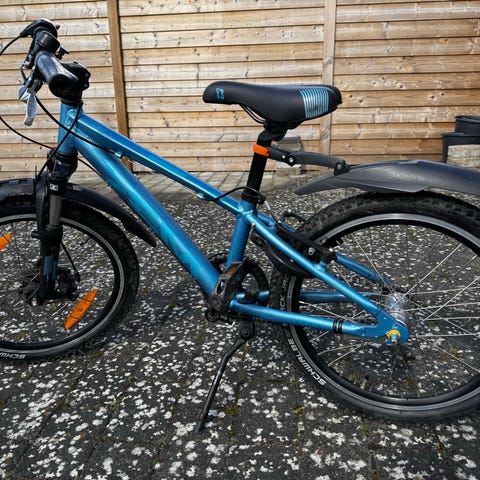 MBK kvalitets børnecykel med 20" hjul i super god stand. Cyklen har affjedret forgaffel, dæk med mønster egnet til både vej og let terræn, gode håndbremser, fodbremse og Shimano gear (3 stk.)