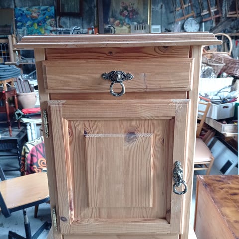 Natbord, fyrretræ / natbord / sengebord / pæn stand / h: 60 - d: 40 - b: 43 / står i Frederiksværk