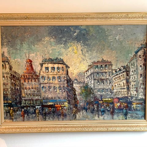 Flot olie maleri med Paris-motiv (Moulin Rouge) i moderne stil.