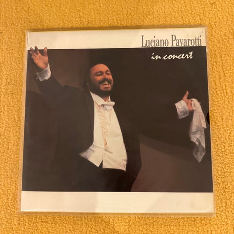 LP i pæn stand. Decca Carreras Domingo Pavarotti In Concert LP. Vinylplade med liveoptagelse, dirigeret af Mehta. Albummet indeholder klassiske vokalværker sunget af de tre tenorer, optaget ved koncertoptræden. Omslag med fotos og trackliste på bagsiden.