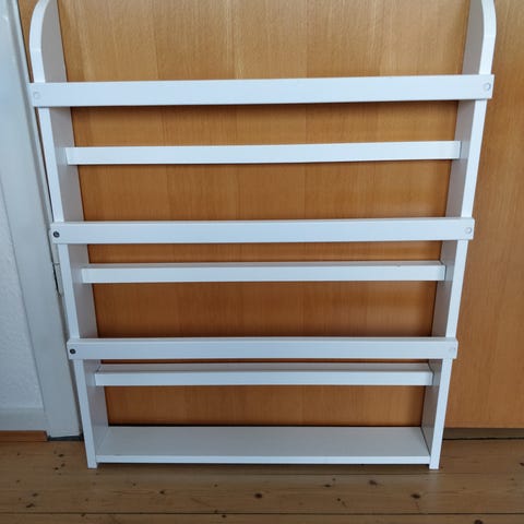 Fin og solid hylde/tallerkenrække med skuffer. Snedkerfremstillet i fyrretræ.