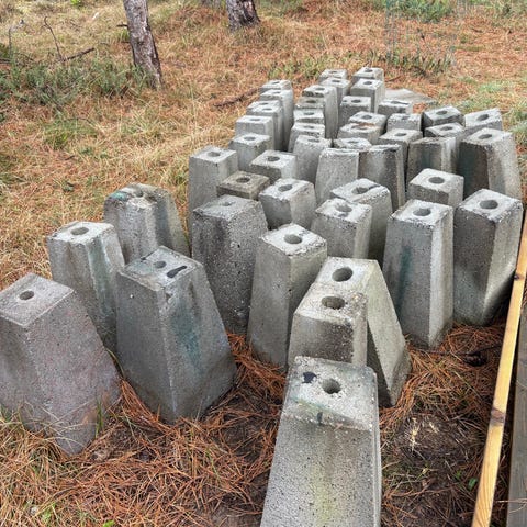 Stolpesten / sokkelsten med påmonterede galvaniserede stolpebeslag. Egnet som fundament til fx terrasse, hegn, carport eller mindre konstruktioner, hvor der er behov for stabile punktfundamenter.