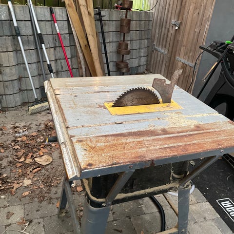 Stayer bordrundsav med klinge på 250 mm. Savklingen er mærket 0250 Ø10" 224-HM, 5000 rpm, fremstillet i Italien. Maskinen har drejeligt underlag med graderingsskala til geringssnit. Elmotor er indbygget under bordet, og saven har plan metalbordplade med styreanslag. Velegnet til præcisionssnit i træ og lignende materialer i værksted eller på byggeplads.