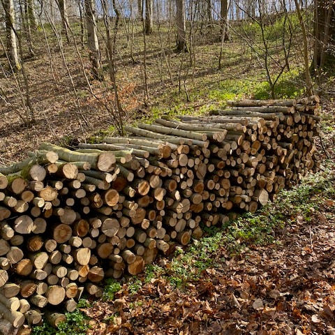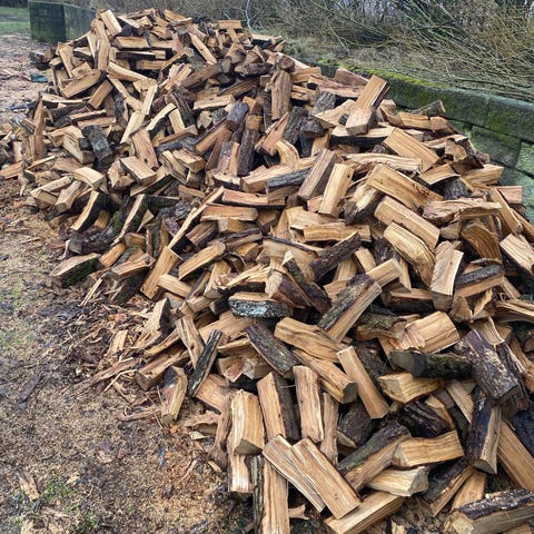 Løvtræ (Rød-el) fældet før saft optag. Savet i længde på 25-30 cm. Tæt stablet i 2 meters bredde og 1 meters højde. Nemt at kløve (ikke "knudret" træ), meget fast i veddet (god brændværdi).