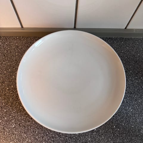 Måler ca 23,5 cm i diameter og 3 cm i højden.