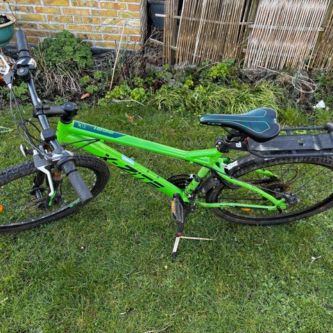 X-zite mountainbike med 26" hjul i sort/orange. Cyklen har affjedret forgaffel, lige styr, skærme for og bag samt støtteben. Udstyret med håndbremser og 18 gear i alt, enkelte gear skal eftergåes for at fungere. Egnet som mountainbike eller hverdagscykel til større børn/unge med 26" hjulstørrelse.