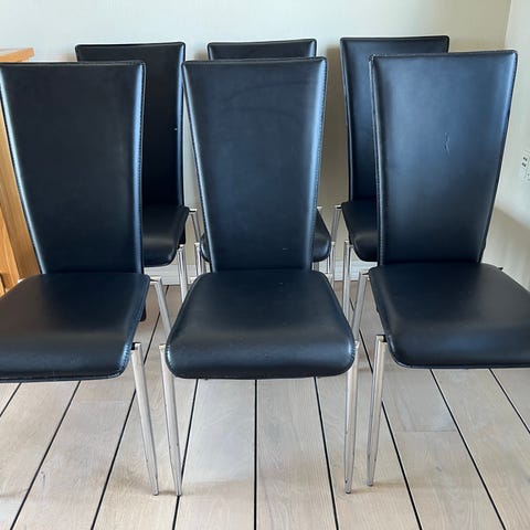 Stole, sort læder med metal ben