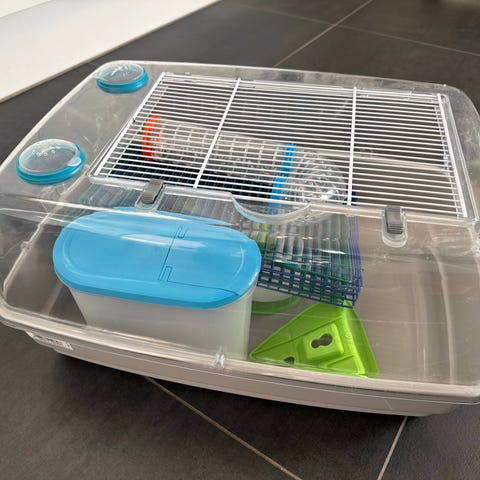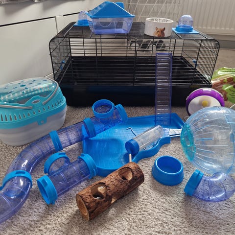 Jeg sælger mit hamster bur med tilbehør, da min dværghamster gik bort for et stykke tid siden.