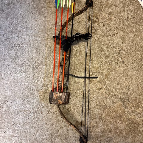 Bemærk: Nogle af de monterede pilespidser har fået rust efter opbevaring i garage, men der medfølger nye spidser, som nemt kan skiftes.