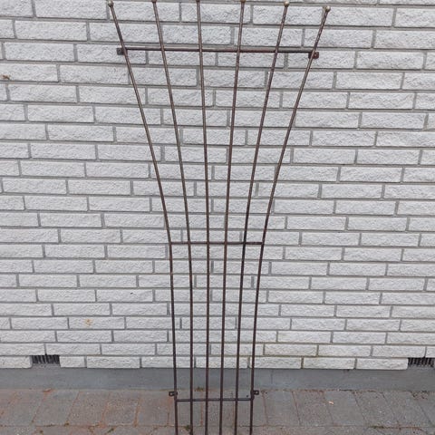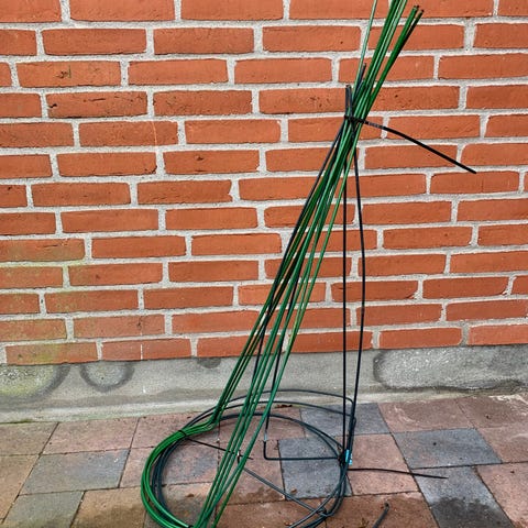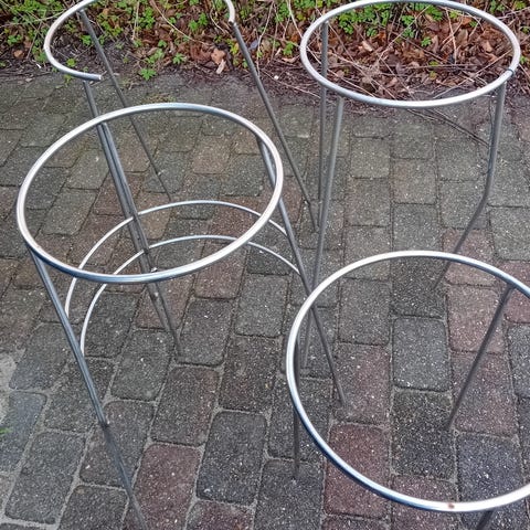 Plante støttebur i metal. Velegnet til at støtte højtvoksende planter i krukker eller bede. Består af flere lodrette metalstænger forbundet med ringe, som holder planten oprejst og giver støtte til stængler og grene.