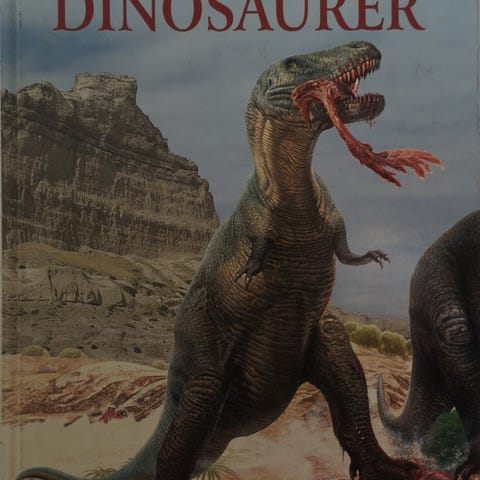 Børnenes leksikon Dinosaurer og forhistoriske dyr bog. Illustreret opslagsværk om dinosaurer og andre forhistoriske dyr, med tekst og billeder der beskriver arter, levevis og tidsperioder. Velegnet som opslagsbog til børn med interesse for naturhistorie og forhistoriske dyr.