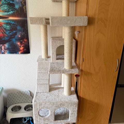 Klatretræ til kat med hule og to liggepladser beige