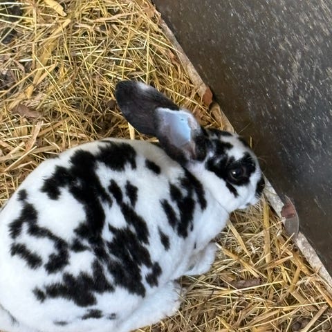 De går ude i stort bur. og er ude på lukket græsplænen dagligt, sammen med høns, ænder, hund og en skildpadde. samt bliver "forkælet" med af naboens børn dagligt.