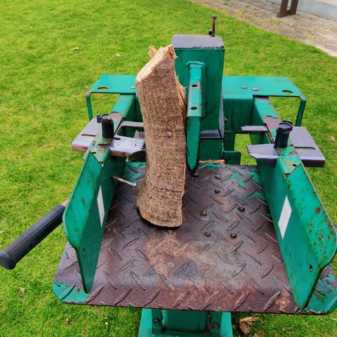 Manuel brændekløver til kløvning af brændestykker. Værktøjet består af en lodret stålstang med slagvægt, der bevæges op og ned for at kløve træet, samt en holder til fastspænding af brændestykket. Egnet til kløvning af mindre og mellemstore stykker brænde til brug i brændeovn, pejs eller bålsted.