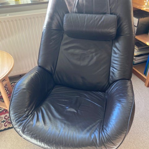 Stressless Vegasstol med sortlakeret bøg og ekstra forhøjningsring - er brugbar men 2 fjedre er sprunget