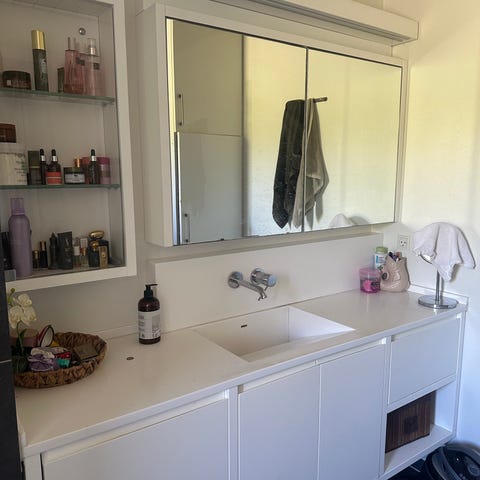 Hvid badeværelsesvask med underskab og skuffer