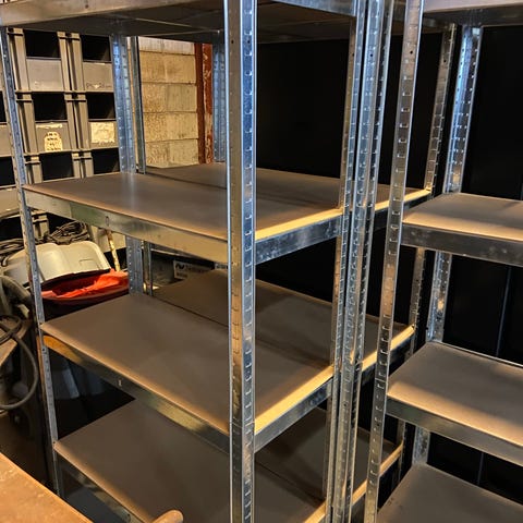 Reol metal lagerreol med hylder sølvfarvet