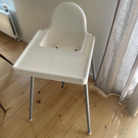 IKEA højstol hvid plast med metalben