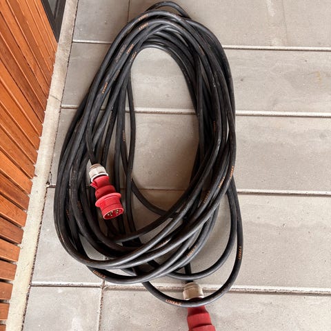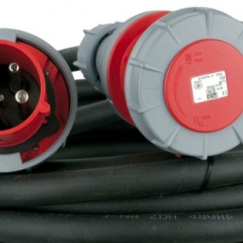 Forlængerledning kraftkabel med CEE stik i sort gummikabel. Diverse kabler er kun med Hun stik