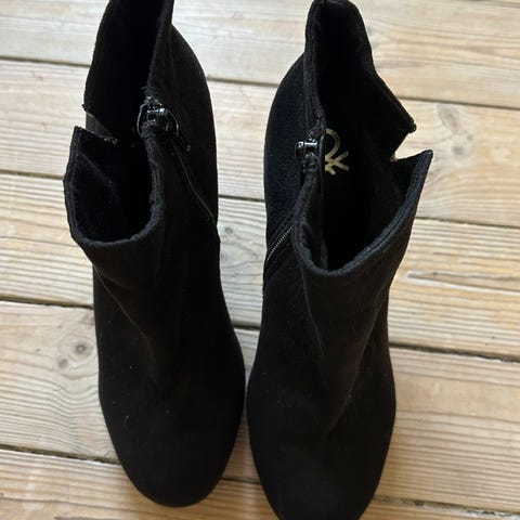 Tamaris højhælede støvler i størrelse 41. ( jeg bruger normalt str 40, den var for lille) Støvlerne er i sort materiale med blokhæl og rund snude. Lynlås i siden for nem af- og påtagning. Velegnet som hverdagssko eller til mere formelle anledninger.