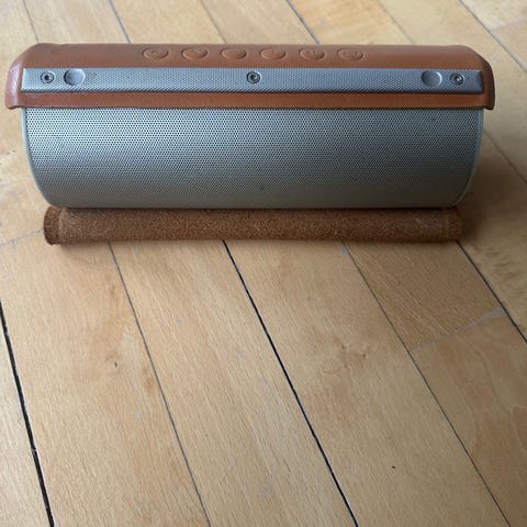 Lemus Life bluetooth højttaler der kan stå eller hænge, da der medfølger en bordstander.