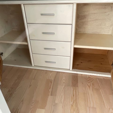 Hvidmalet gammelt københavnerskab med 2 skuffer - kan hænges op